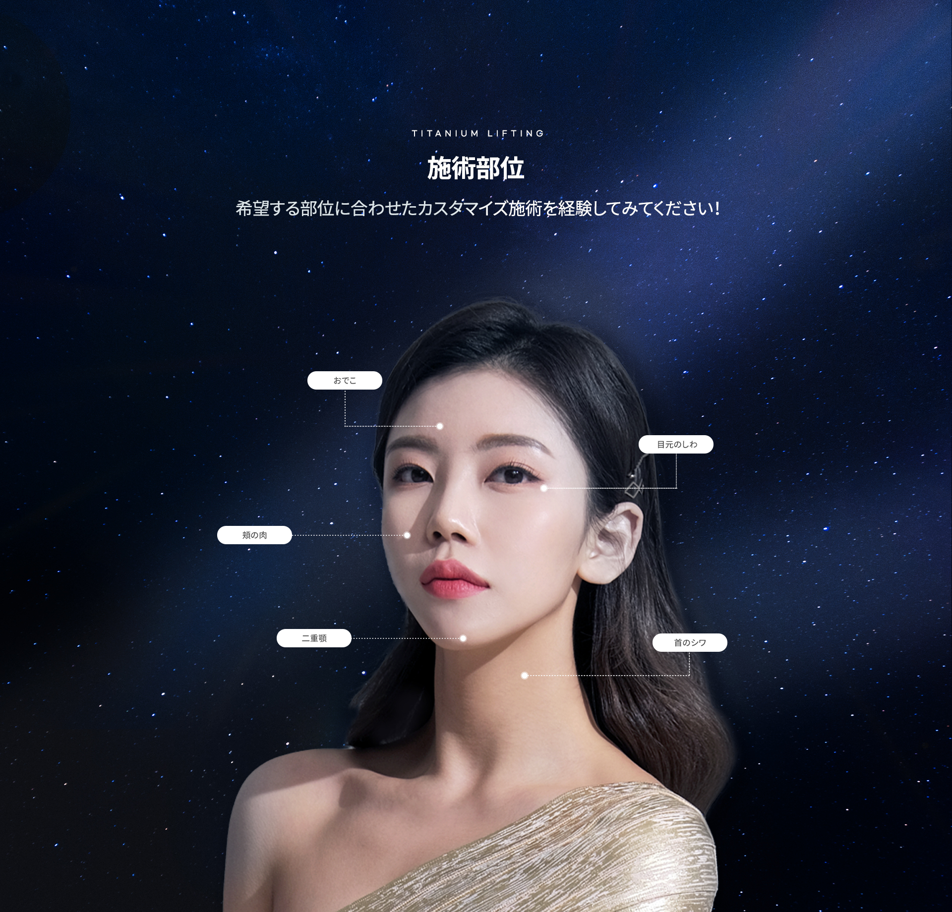 チタニウムリフティングは即時的なリフティング効果に加え、毛穴や脱毛効果も兼ね備えたオールインワンの高級レーザー施術です。
